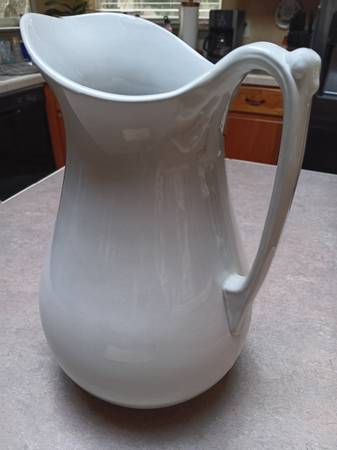 pitcher and wash bowl basin pitcher is royal ironstone china A.J. Wilkinson LTD. England $100.00 Please call if interested